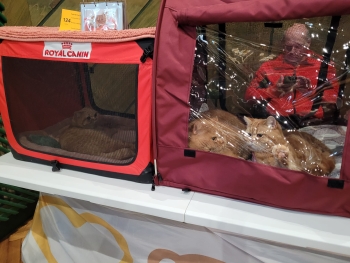 Neděle… Padla velká rozhodnutí jako např. „…dneska si panička zakáže dorta!“ Ale jinak to byl překvapivě příjemný víkend na výstavě. Páníčkové potkali majitele našich odchovanců a lidi, kterým se líbili naši kočičáci, získali tituly, které potřebovali, měli relaxované Zrzouny na pódiu, odvezli si dva BIS poháry a celý víkend si povídali s kamarády… Panička trošinku přehodnotila svůj pohled na využití volného času o víkendu a nechuť trávit ho na výstavě. Hodně to ovlivnilo první použití sturdi klece, která fungovala jako obrovský stan pro kocoury a těm tam bylo dobře.